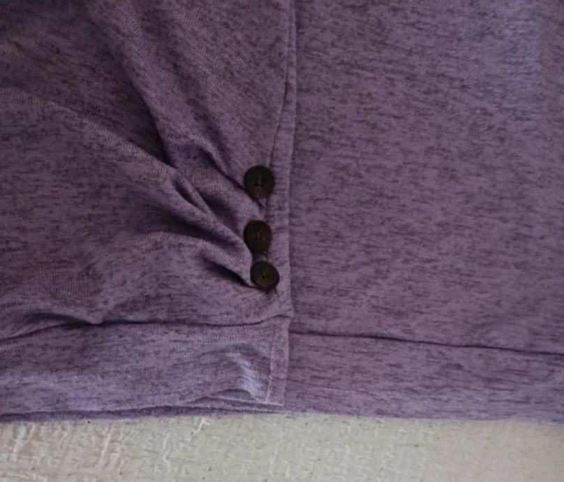 Lila majica - tunika dugih rukava okruglog i ovratnika sa ukrasnim gumbima i malim naborom na rubu tunike - majice. Veličina 44/46 Samo isprobana.