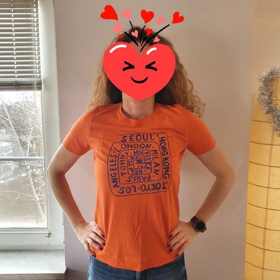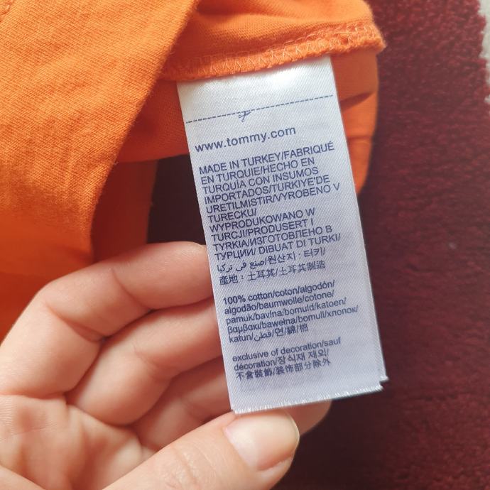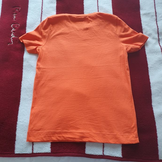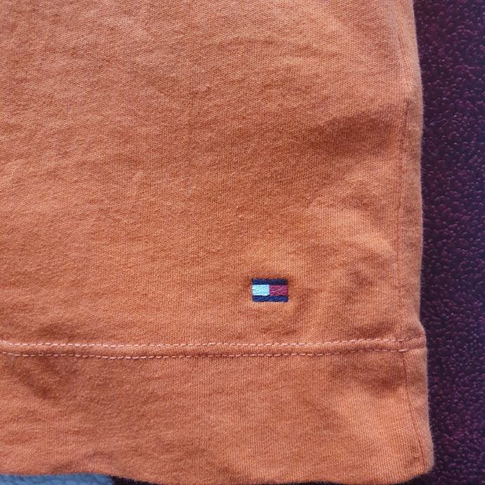 Tommy Hilfiger narančasta majica vel. S. Boja je kao na drugoj slici. Nošena svega par puta. Ramena 34.5cm, prsa 46cm, dužina 63cm. 100% pamuk. Cijena sa slanjem 12 eura, osobno preuzimanje 10 eura. Osobno preuzimanje ISKLJUČIVO na Cvjetnom(možete tamo i isprobati u nekom od dućana), trgu ili na Mihaljevcu