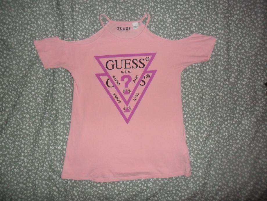 Majica original Guess, sve ušivene etikete na broju, jako mekana i elastična, golih ramena, veličina piše dječji 158-163 ili odrasli XS, super stanje, kao nova, povoljno