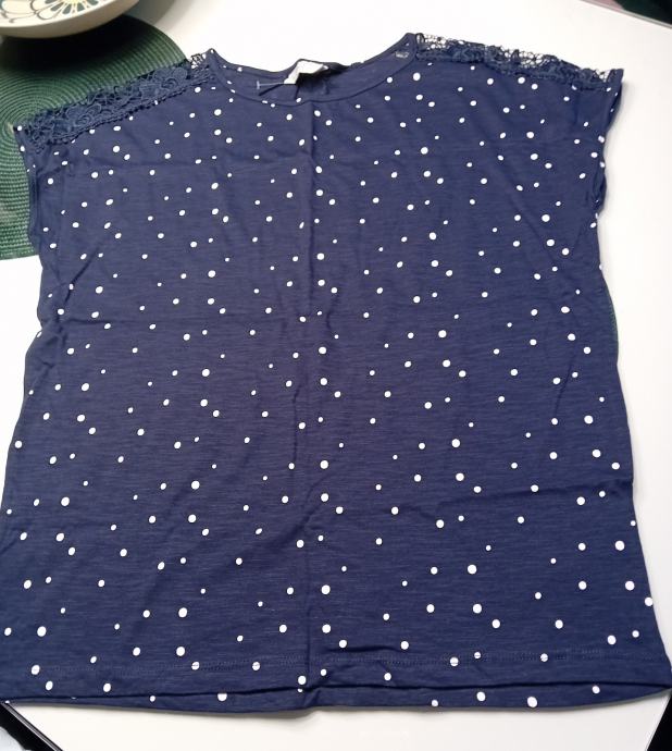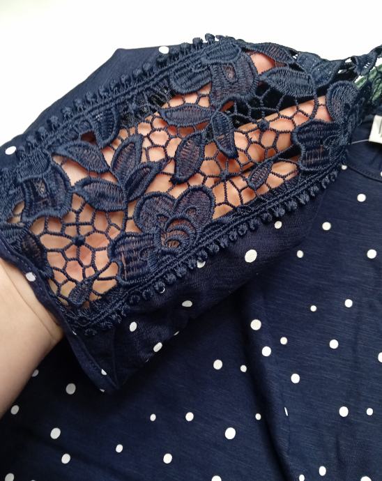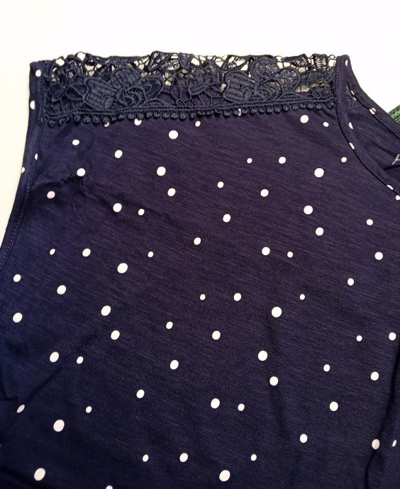 PLAVA MAJICA S ČIPKOM I TOČKICAMA VEL. 40/42/44 - NOVO