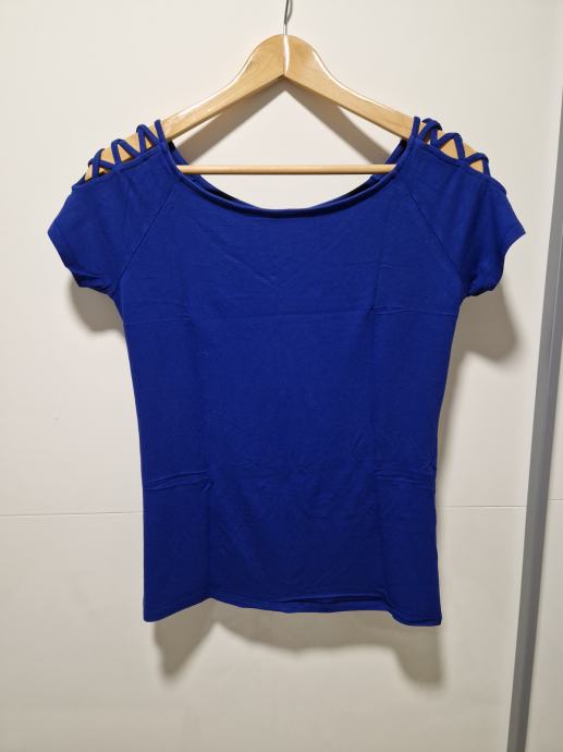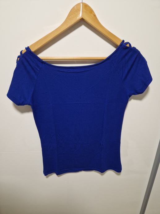 Plava majica kratkih rukava, nošena nekoliko puta na ramenima ima otvoreno. Kupljena u orsayu, veličina M.
