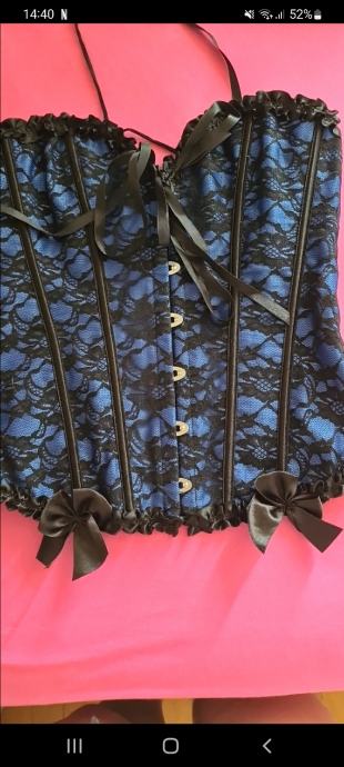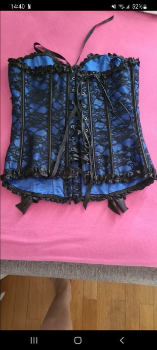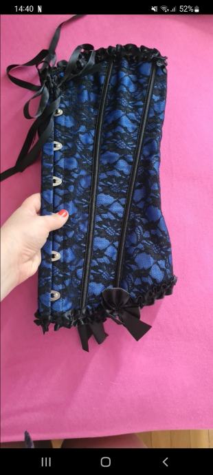 Prodajem predivni plavi korzet kupljen u ghotik ducanu,jednom isproban,ocuvan i bez ostecenja. Odgovara velicini m,kosarica 75b. Nisam za zamjene.