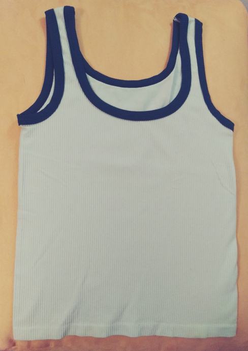 Svijetlo plava rebrasta majica bez rukava, na bretela, naramenice.