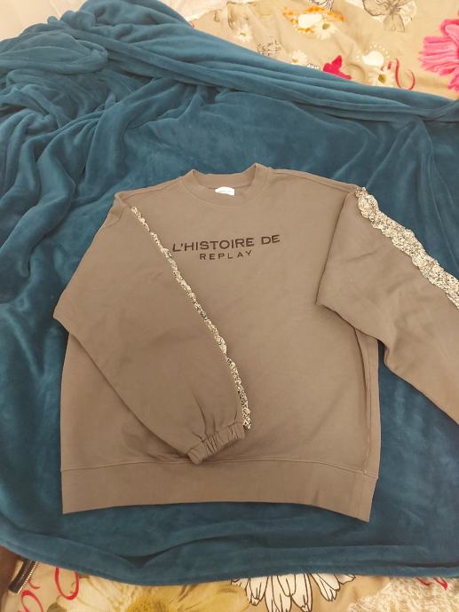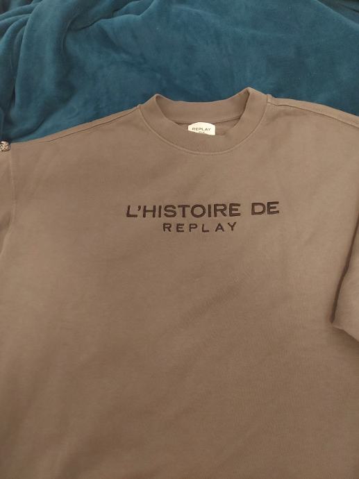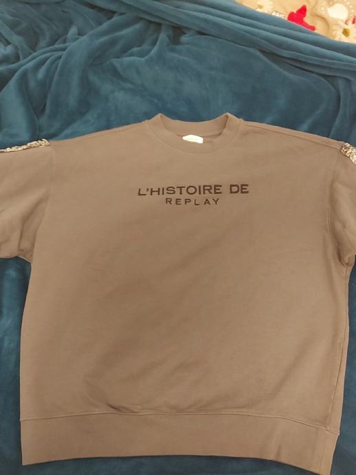 Siva pamucna Replay majica nova, nikad nosena detalj volani na rukavu. Oversize midel, odgovara M/L