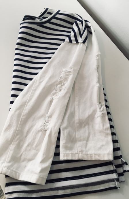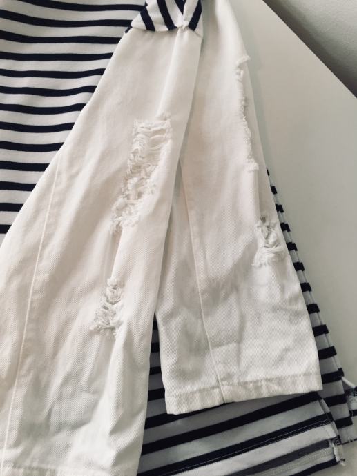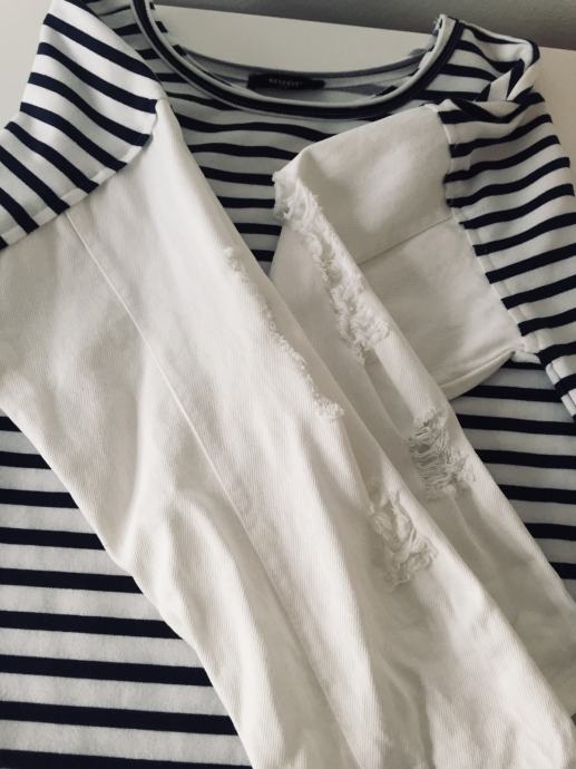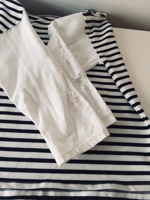 Nikad nošena majica, plavo bijele pruge, bijeli traper rukavi s poderotinama.