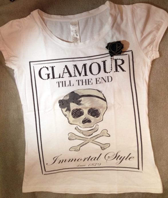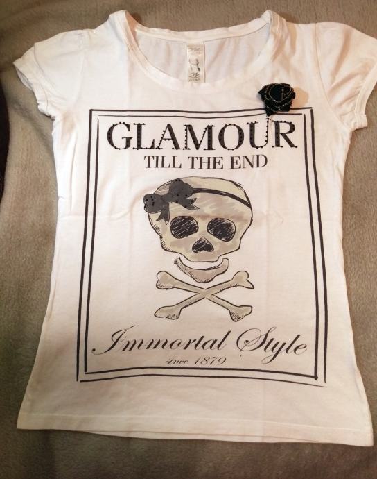 Bijela majica kratkih rukava od kvalitetnog pamuka koju krase sjajne perlice i trajno uklonjiva ruža.