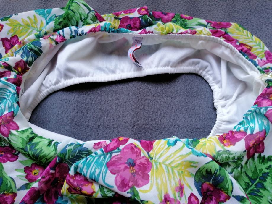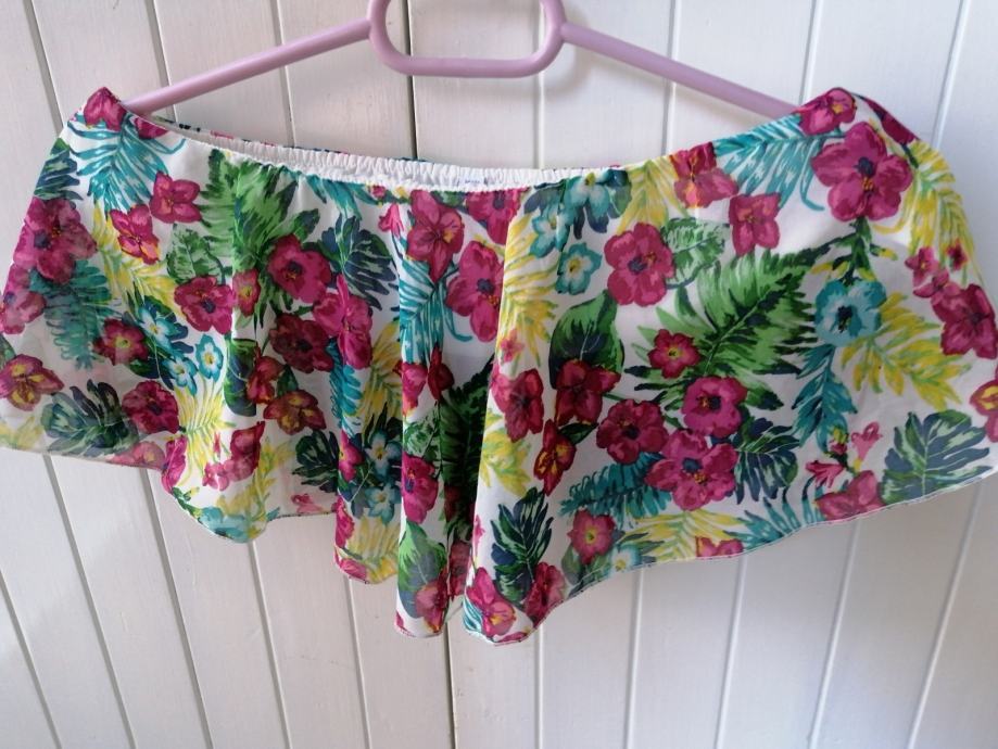 Sastav: 100% polyester. Mjere: dužina sa strane je 18cm, širina gore 37cm,( a kad se razvuče ide do 44cm) a dužina po sredini 22cm, a na dnu širina je 78cm jer ide u zvonolik kroj.
