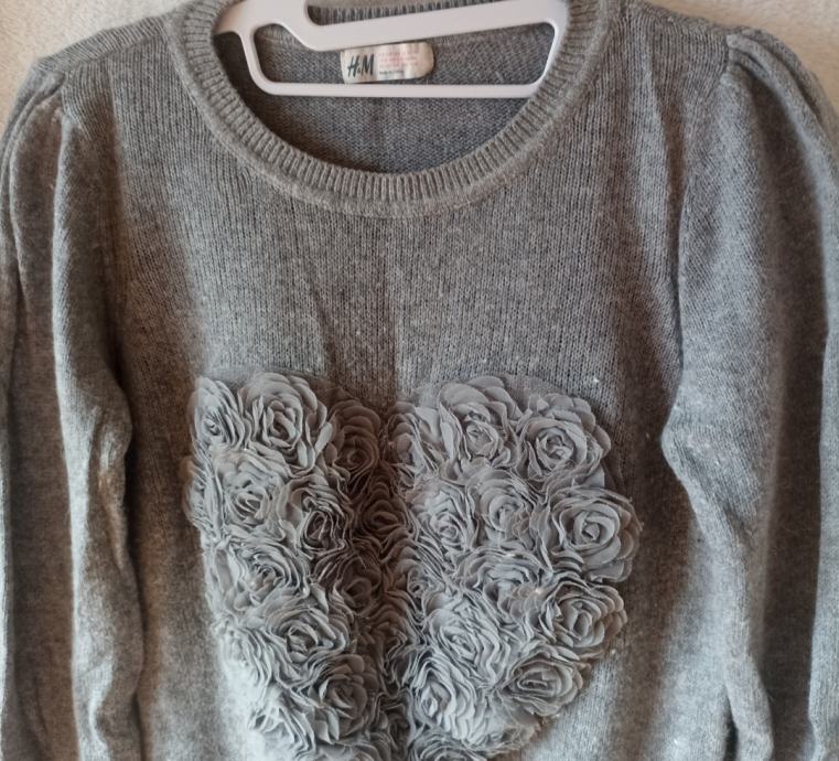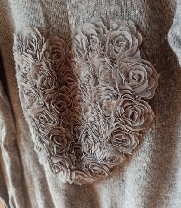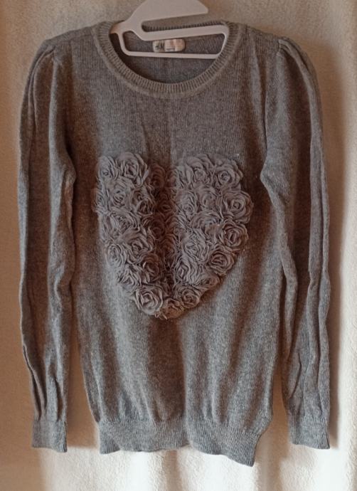 Očuvana majica HM (kratko nošena) s velikim srcem u 3D od "svile" i lagano puf rukavima