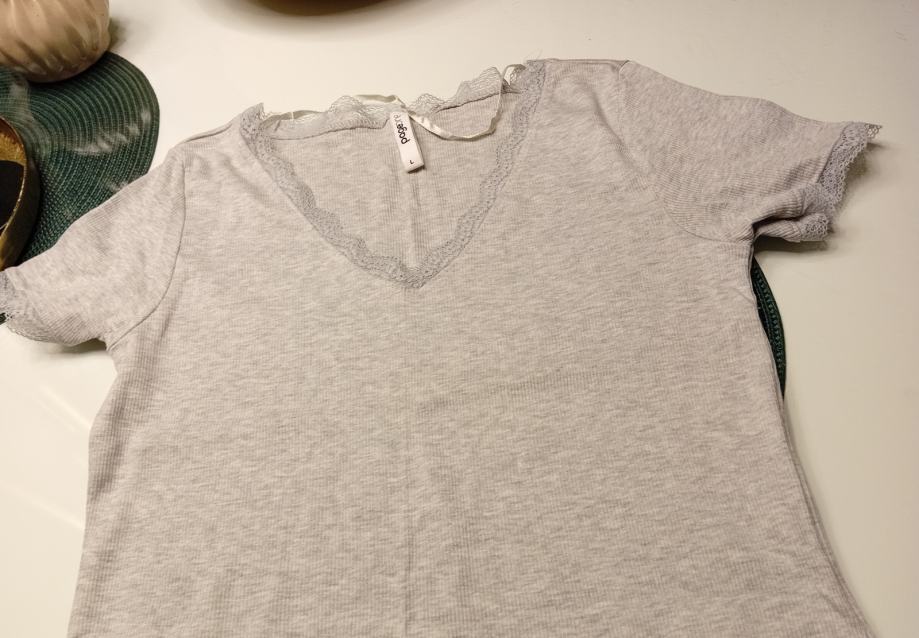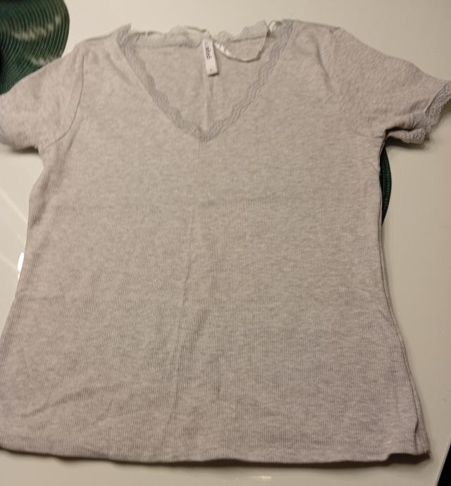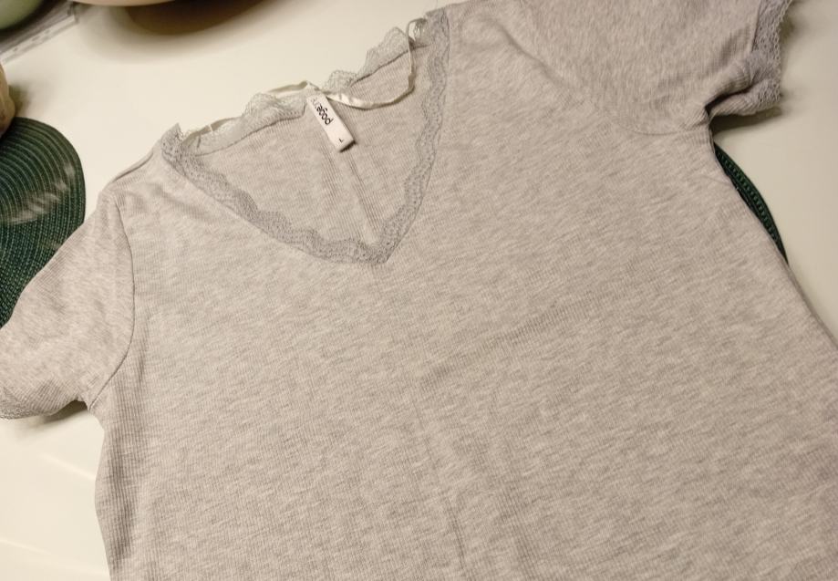 SIVA MAJICA S ČIPKANIM DETALJIMA VEL. L - NOVO