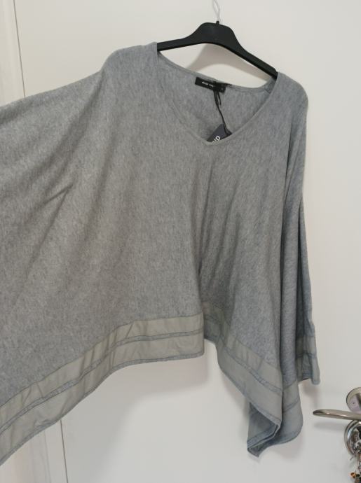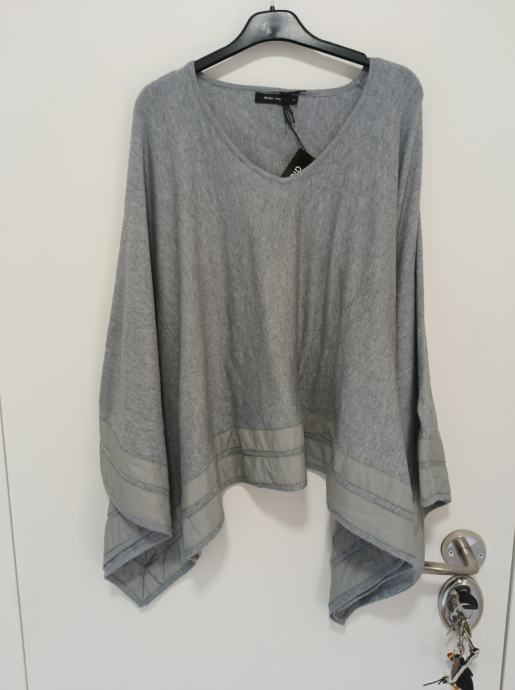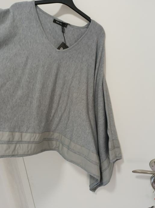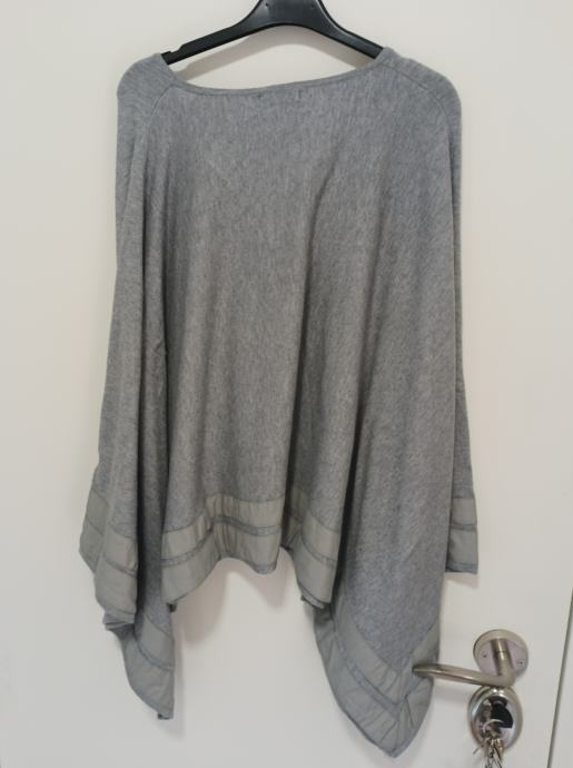 Prekrasna siva tunika koja je jako široka. Piše veličina 2, što obuhvaća konfekcijske brojeve 40, 42. Može i manje, ali i veće jer je dovoljno široka. Kombinacija materijala, predivno oblači.