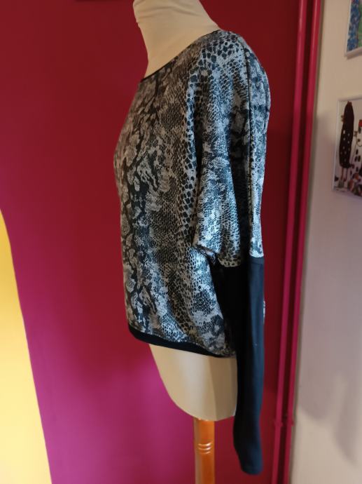 Predivna siva, mramorna široka vesta ispod koje se nosi košulja. podiže svaku kombinaciju. Moderna. Nosi se široko.
