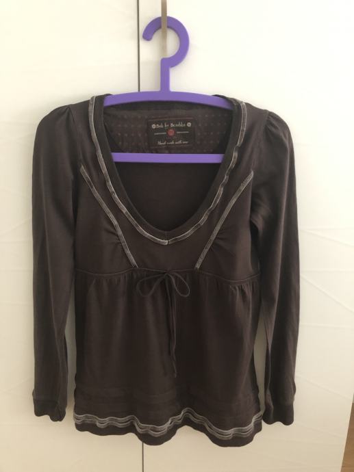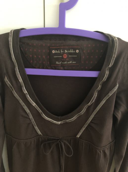 Prodajem novu i romantičnu Bershka majicu dugih rukava u veličini M (38). Ima detalje baršuna te mašnu ispod prsiju. Jako ugodan pamuk i elastin za nošenje.