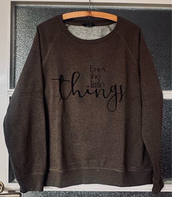 Smeđa sportska majica dužine 63 cm, širine u prsima 110 cm.