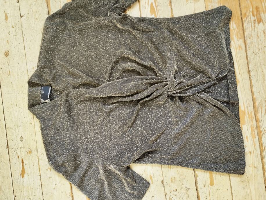 Na fotografiji izgleda zgužvano iako se ne može zgužvati, jako elegantna bluzica, tamnosiva sa zlatnim svjetlucavim nitima