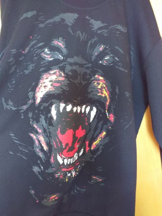 Sweatshirt crne boje, dugih rukava sa rebrastom pasicom oko vratnog otvora, ruba rukava i donjeg ruba majice.