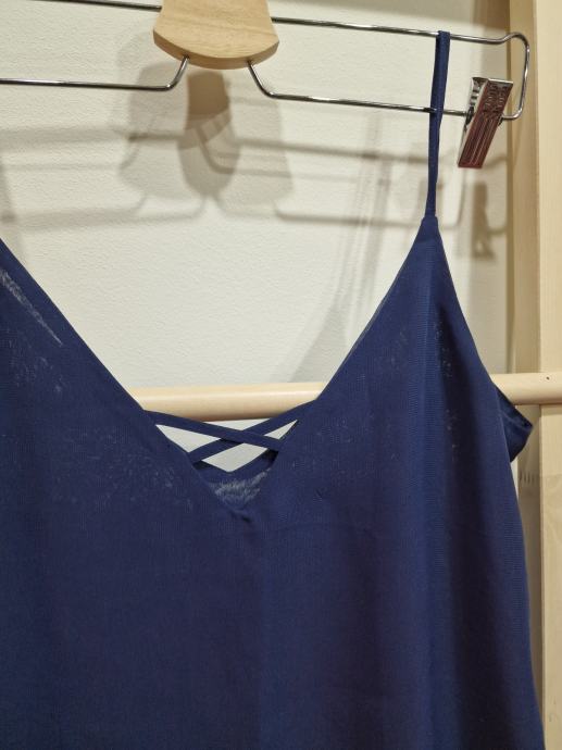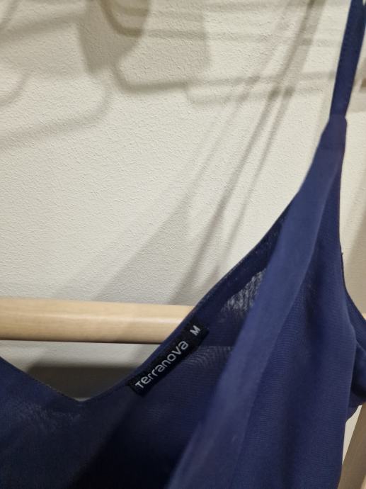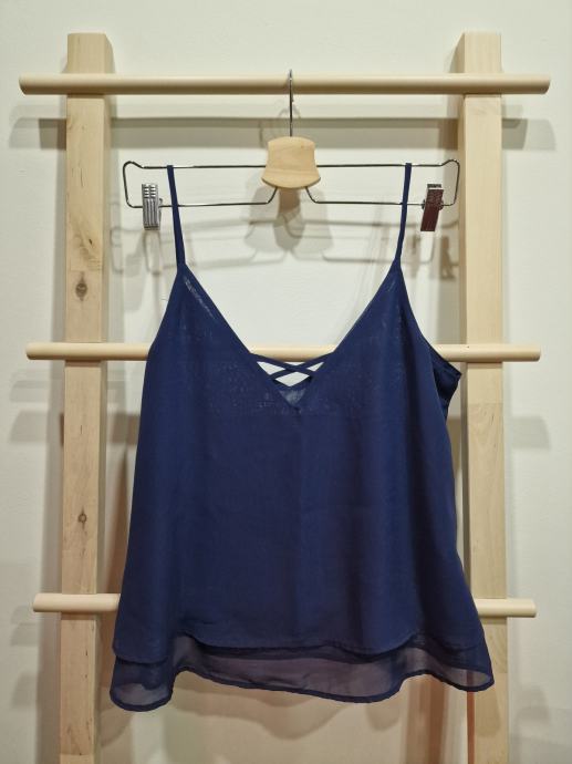 Tamnoplavi top, kupljen u Terranovi. Nošen par puta i odlično očuvan. Veličina je M, no odgovaralo bi i S.. Za dodatna pitanja slobodno se javite....