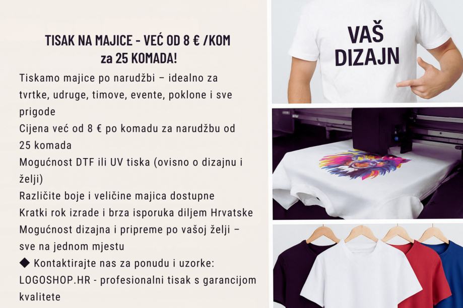 TISAK NA MAJICE – VEĆ OD 8 € / KOM za 25 KOMADA!