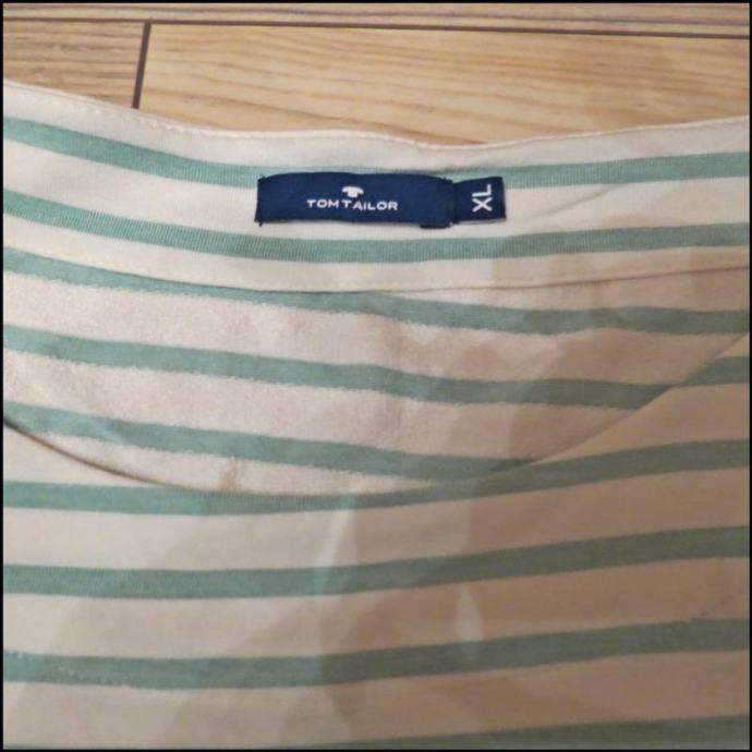 Prodajem novu, nenošenu majicu 3/4 rukava Tom Tailor. Veličina: XL. Boja: bijela sa zelenkastim prugama