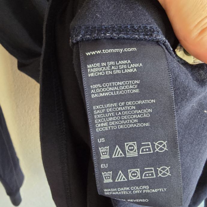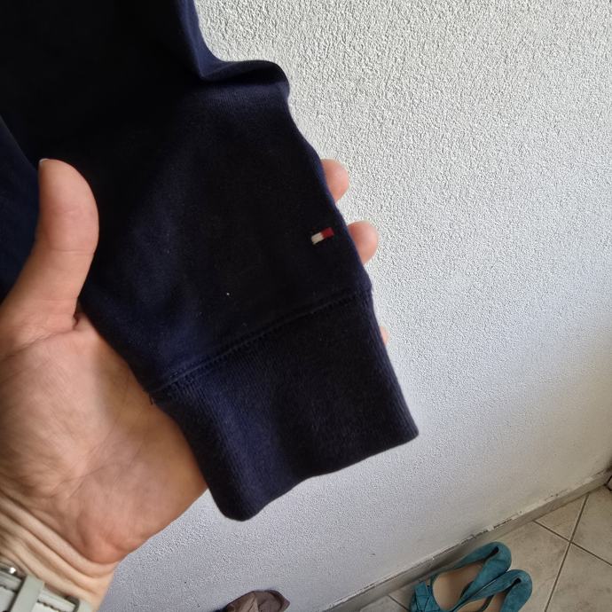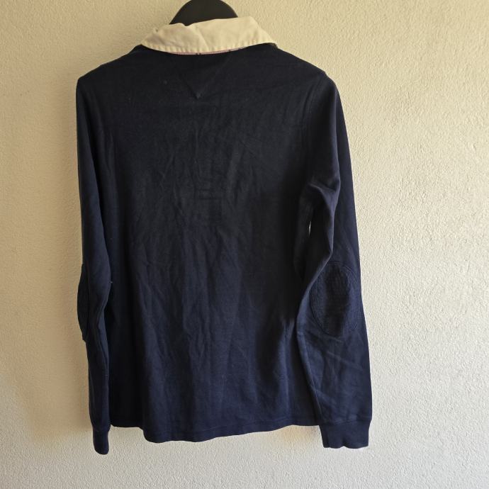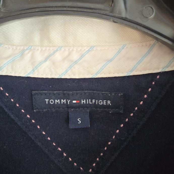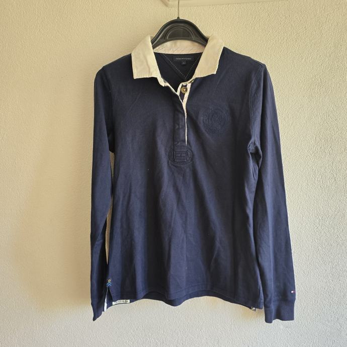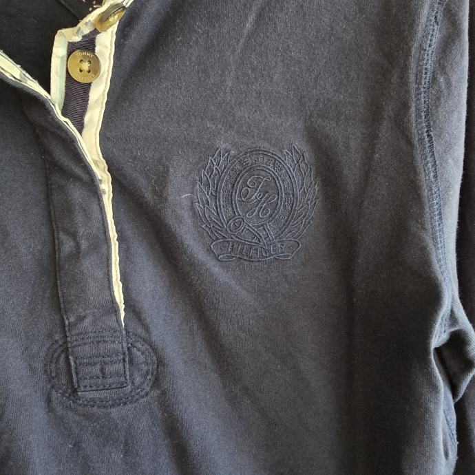 Tamnoplava polo majica Tommy Hilfiger veličina S. Ramena 36cm, prsa 46cm, rukavi 64cm, dužina naprijed 62cm, dužina iza 65cm. 100% pamuk.