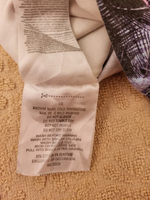 Sastav: 95% pamuk i 5% elastin. Mjere: dužina sa strane je 14cm, širina 29cm, a dužina po sredini 16,5cm.