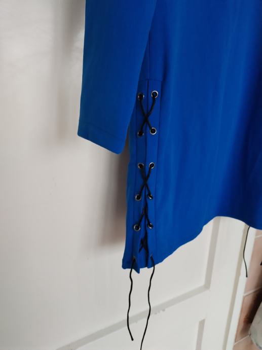Prodajem krasnu novu tuniku u denver boji, M, kao na slikama. Otraga se zatvara zatvaračem kroz čitavu duljinu. Sa strane se kao cik cak veže, ali je ispod podstavljeno. Duljina je cca 75cm, a rukava cca 56 cm.