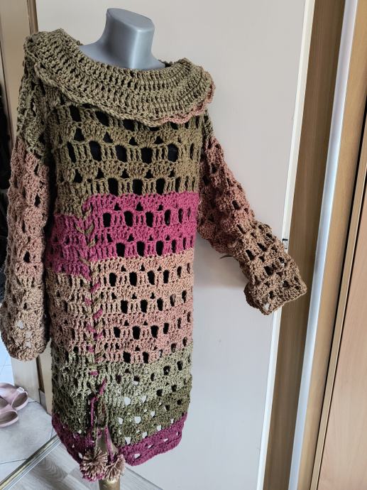 Ručno heklana topla tunika unikat univerzalne veličine ide do 48