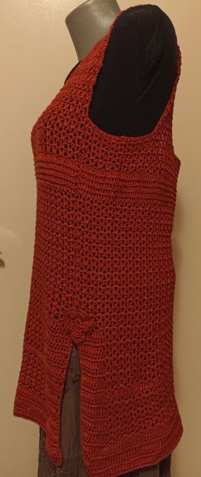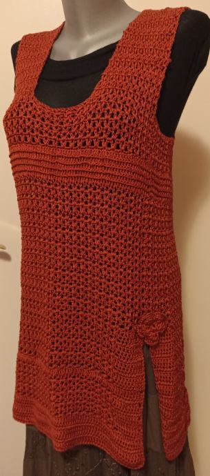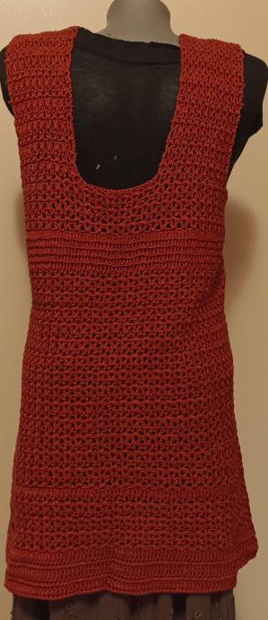 Tunika boje tamne cigle, ručno heklana od pamučnog konca.