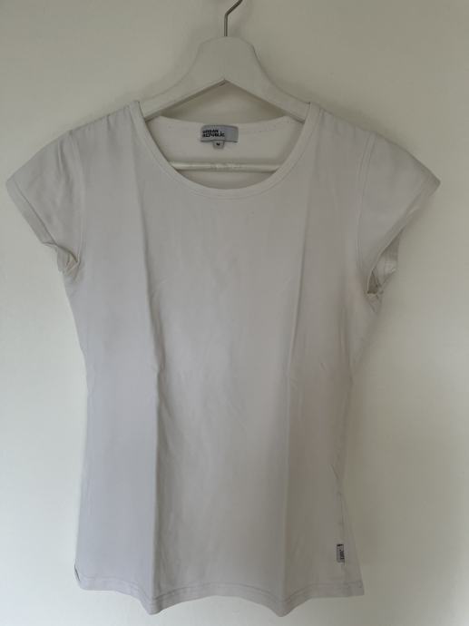 Nošene, nemaju oštećenja, na bijeloj se malo vidi trag deodoranta obje u kompletu.Jako rastezljive. Cijena je za obje majice u kompletu 4 €