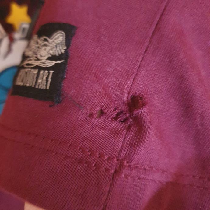 Originalna Von Dutch bordo majica u veličini S s atraktivnim grafičkim printom. Majica je kratkih rukava s prepoznatljivim Von Dutch logom na leđima. Idealna za casual kombinacije tijekom toplijih dana. Majica je nošena samo jednom, ali ju je kćer zakačila za ogradu i ima jednu sitnu rupicu sastrane. Mjere su ramena 44 cm, prsa 49 cm, dužina 79 cm. 100% pamuk