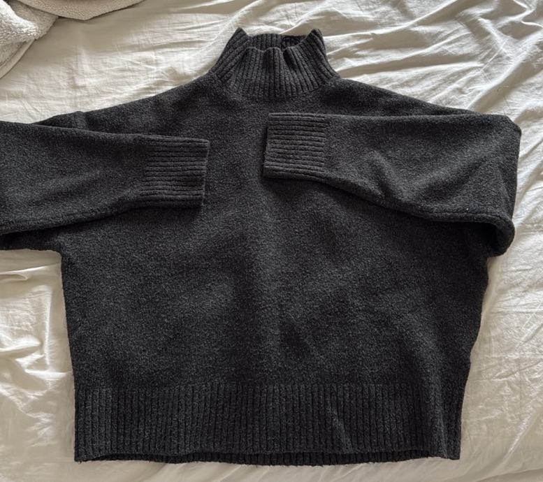 Prodajem tamnosivi pulover s dolčevitom (rolka), klasičnog i elegantnog kroja. Ugodan i topao, idealan za jesen i zimu. Nošen, ali očuvan i bez oštećenja. Rukavi i donji rub su rebrasti, materijal mekan i ugodan za nošenje.