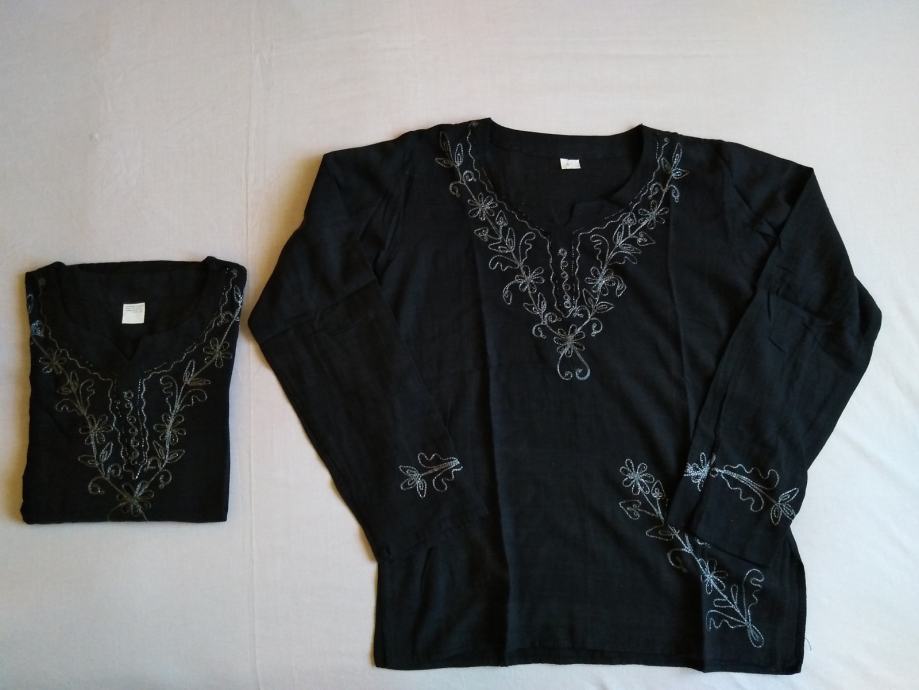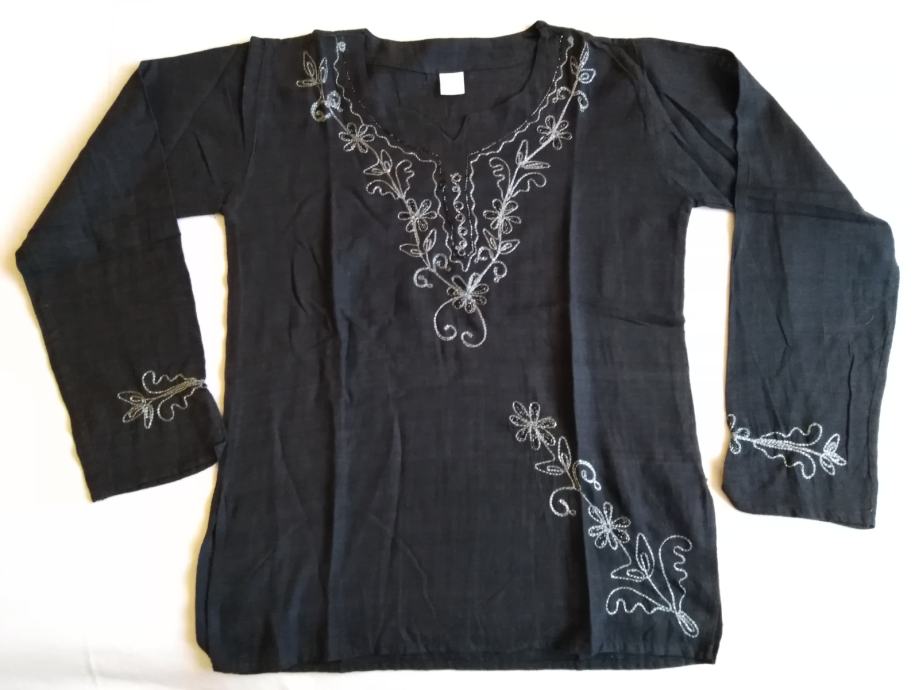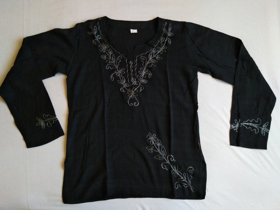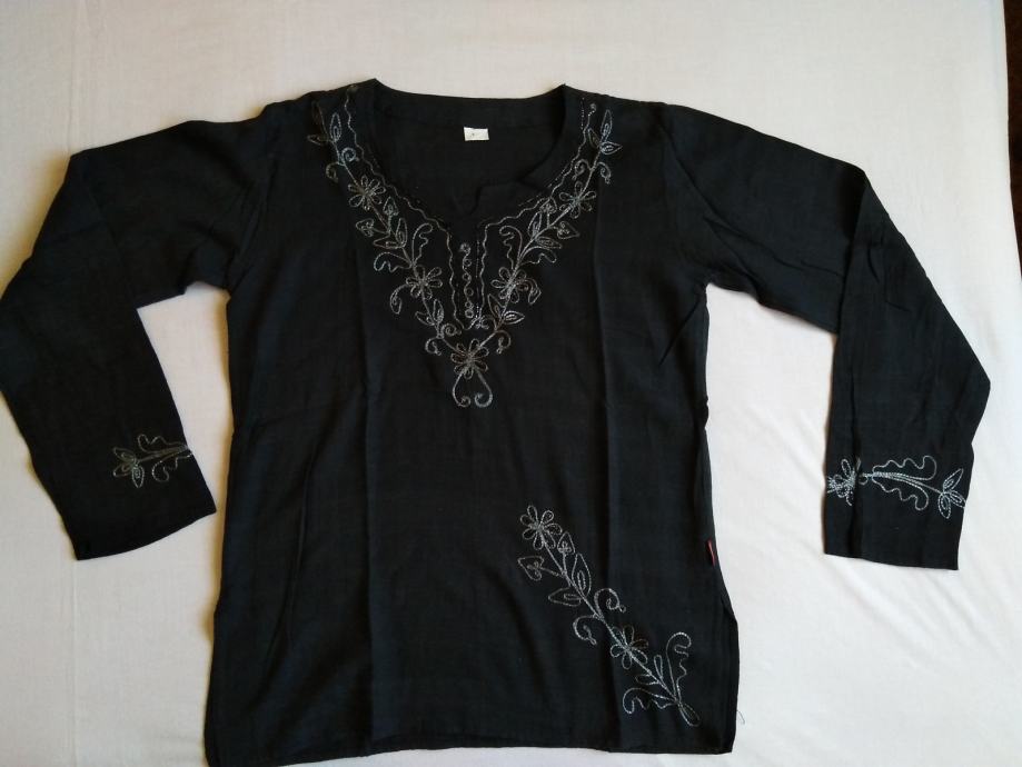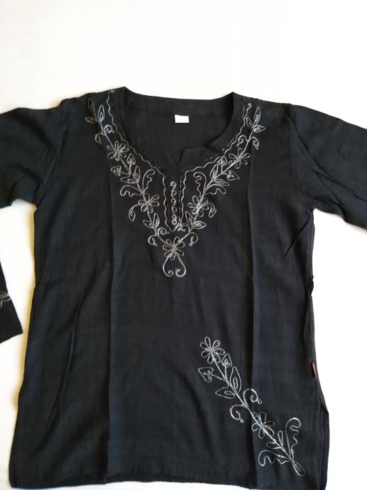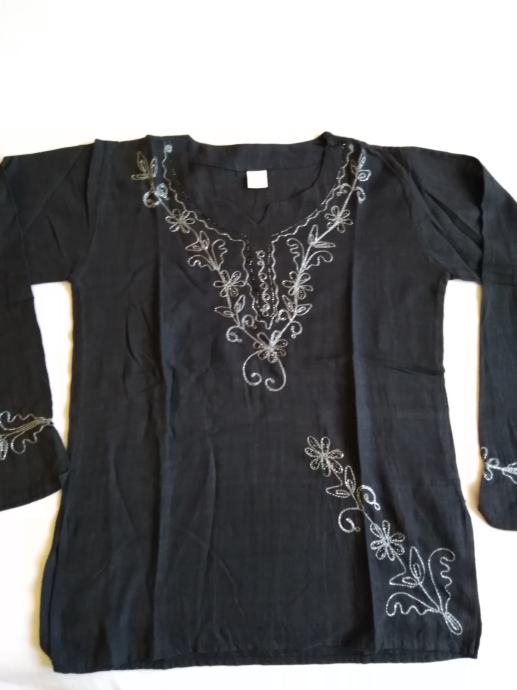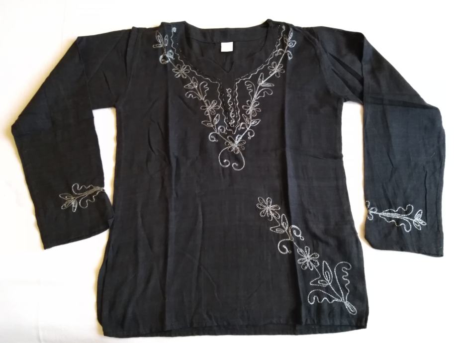 Ženska crna tunika sa sivim vezom
