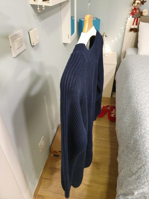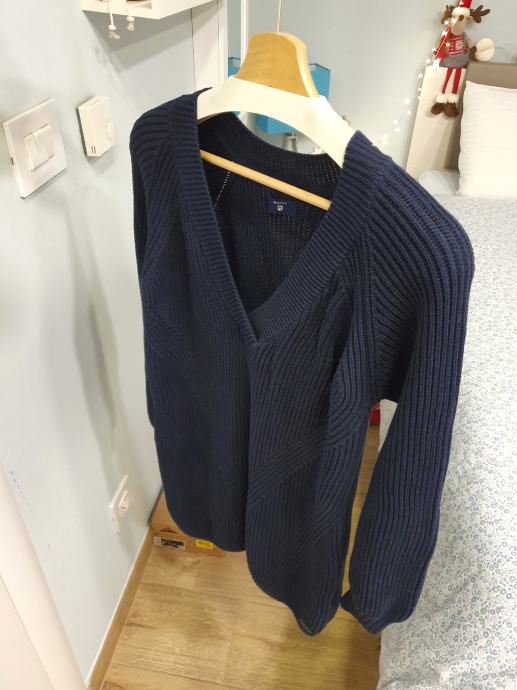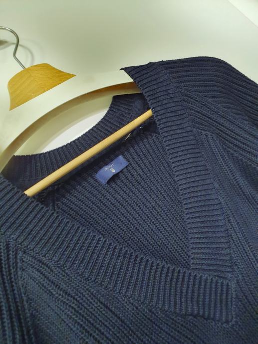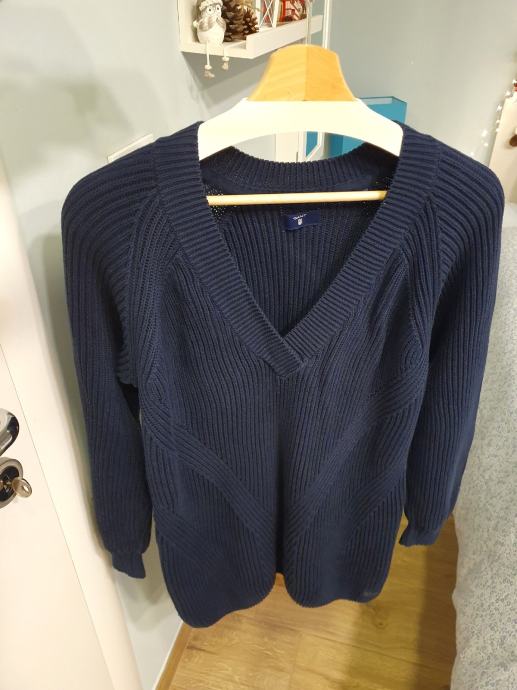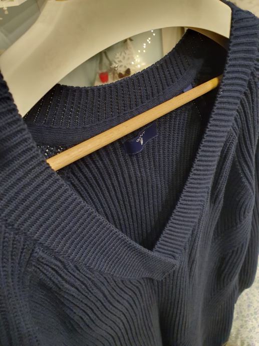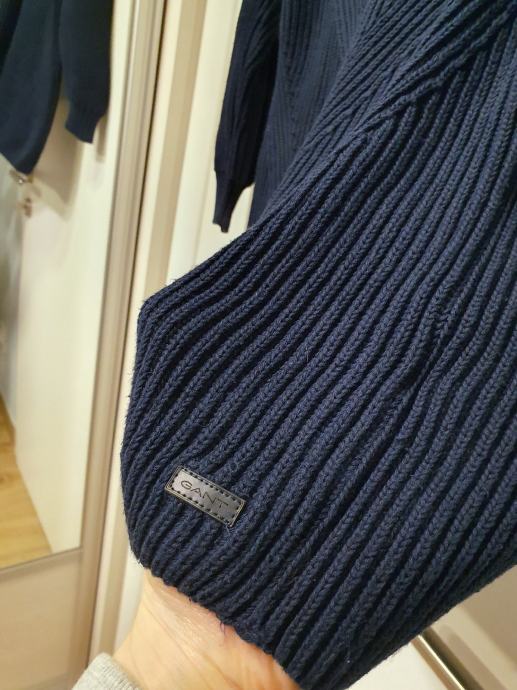 Tamnoplava Gant vesta, mekana, rastezljiva, ful ugodna, materijal je onako bogat, puniji ali mekan.