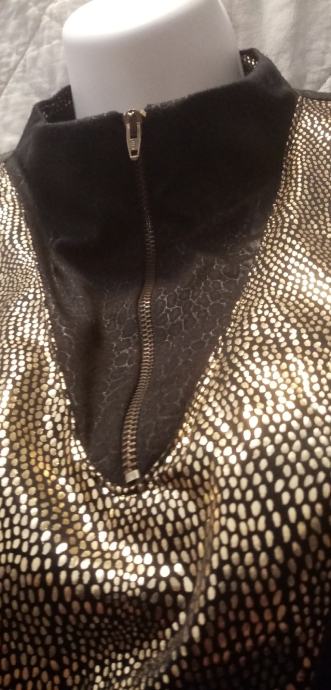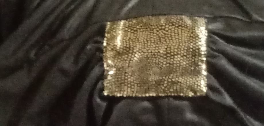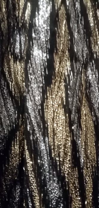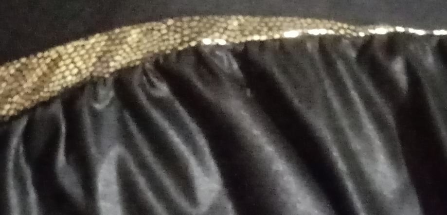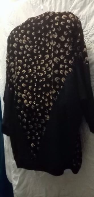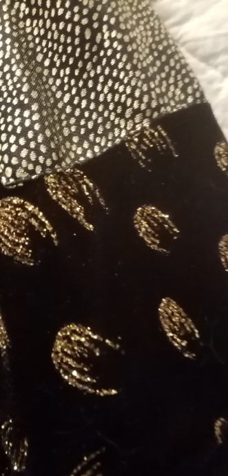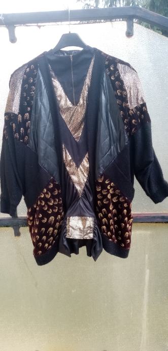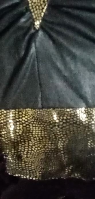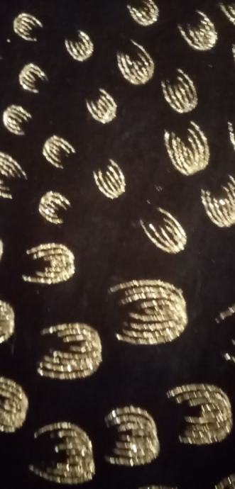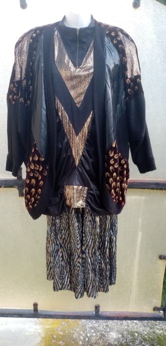 Komplet Crni sa zlatnim aplikacijama. Šos je plise zlatno srebrni i nov, dok je ostalo rabljeno malo. XL, XXL.