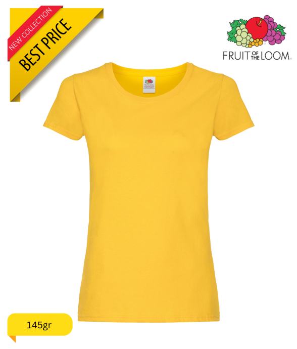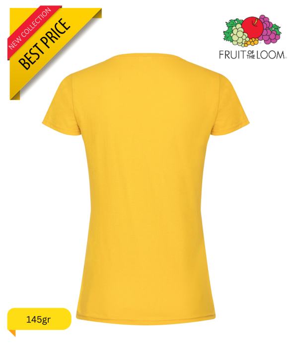 Ženska Majica Fruit of the loom . Lady's Original T pruža moderan i udoban izgled. Izrađena je od visokokvalitetnog materijala koji osigurava trajnu ravnotežu između vaše kože i okoline. Uzorak tkanine izrađen je od 100% pamuka s jednoslojnim džersejom, s sivim heather tonom izrađenim od 97% pamuka i 3% poliestera. Posjeduje produženi ženski kroj i okrugli izrez s ton-v-ton vratnom vezicom.
