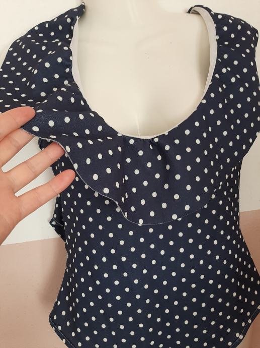 Tamnoplavi ženski body s volanima. Dva puta nošeni jako lijepo stoji. Vel 36