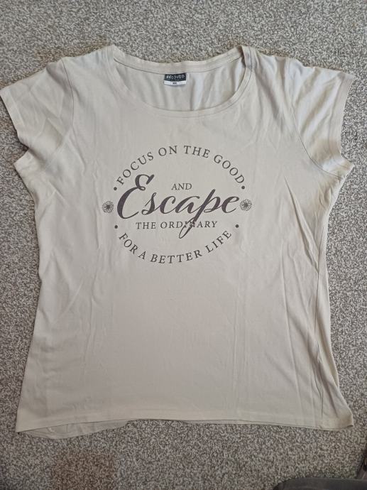 Pamučna bež ženska majica kratkih rukava s natpisom, veličina 44, malo nošena. Udobna je za nošenje u toplim danima i lako se kombinira s raznim odjevnim komadima. Idealna za svakodnevne prilike i ležerne izlaske.