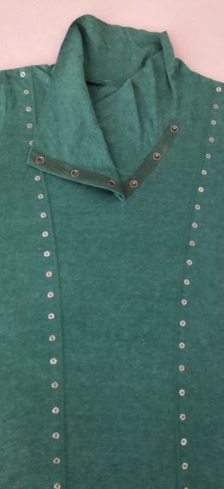 Tamno zelena boja,ima ukrasne nitne,kojima se i kopča gornji dio
