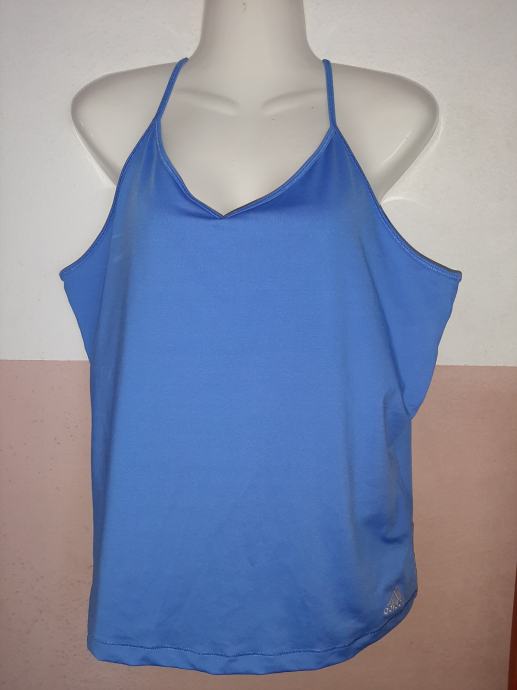 Ženska sportska majica Adidas. Nošena svega par puta bez ikakvih oštećenja. Dio u visini grudi podstavljeni od naprijed i otraga. Vel. XL