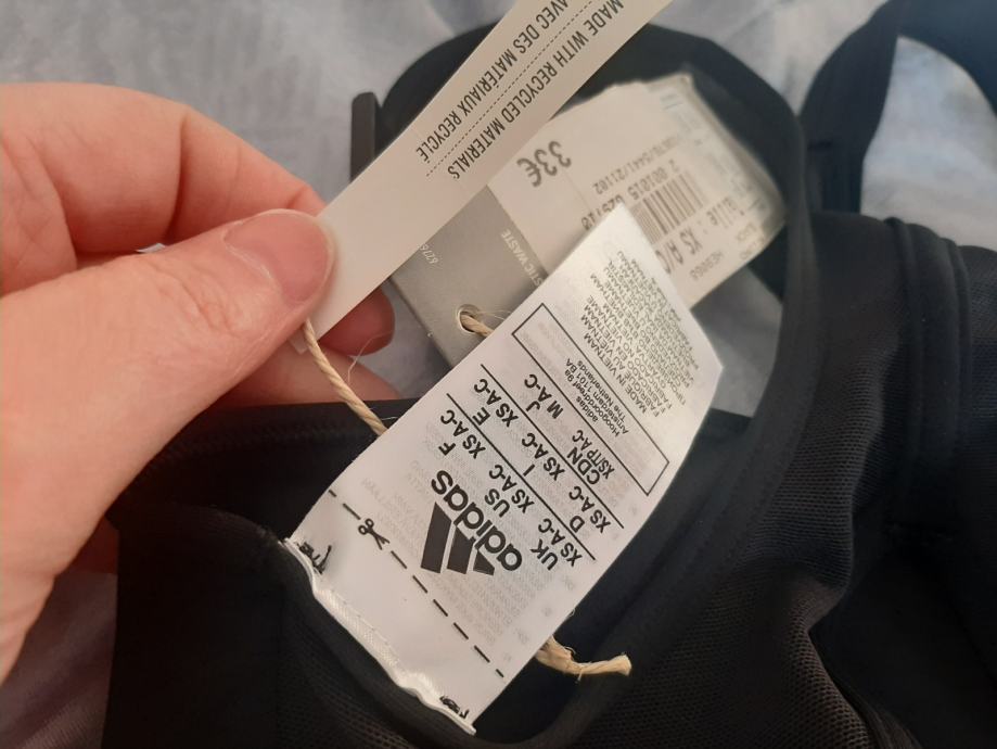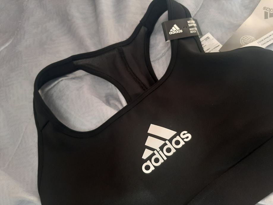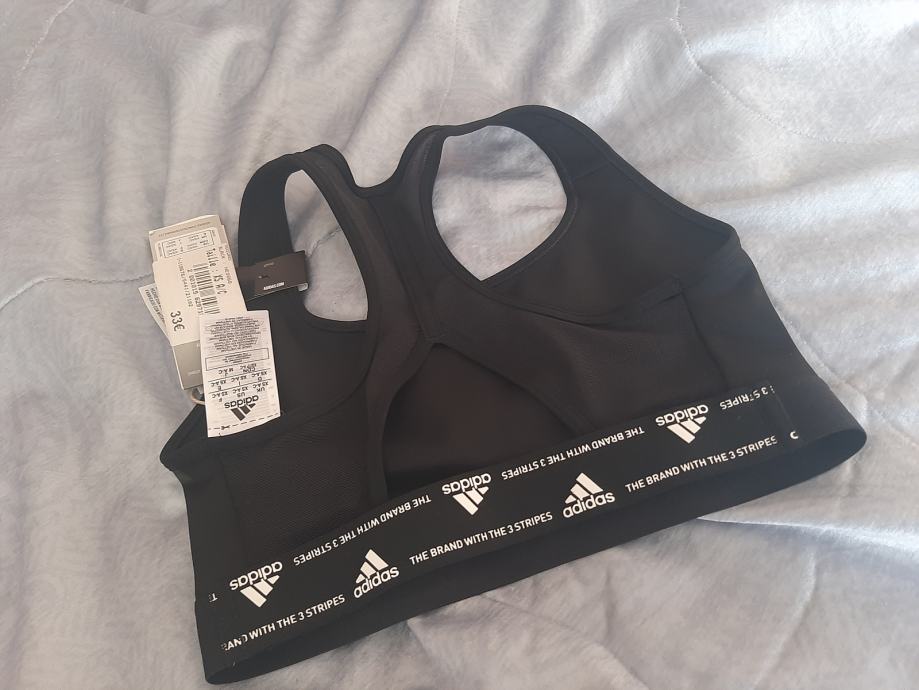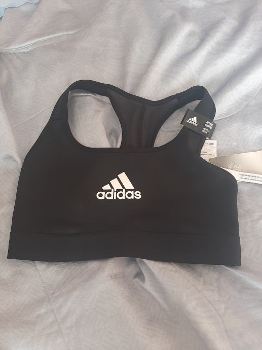 Novi ženski sportski top s etiketom Adidas. Duplo podstavljeni od naprijed. Vel. 34