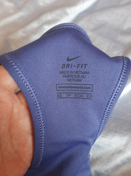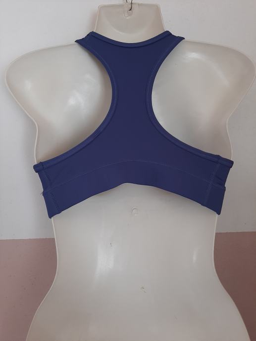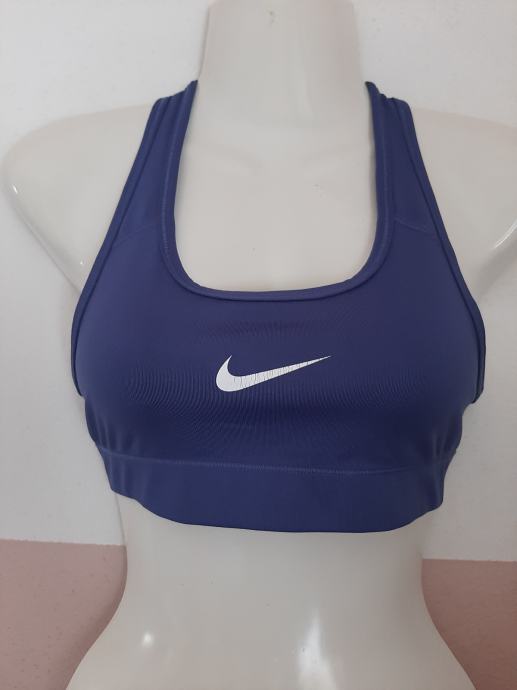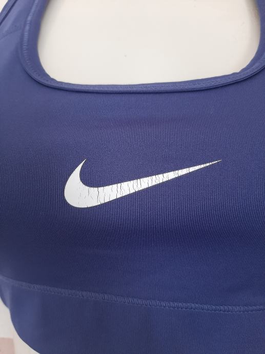 Ženski sportski top Nike. Nošen vrlo malo. Od naprijed znak Nike izgleda "ispucano" iako nema dojam da je oštećeno (poslikano). Od naprijed podstavljeno duplo. Vel. 34-36