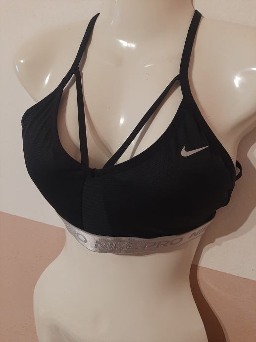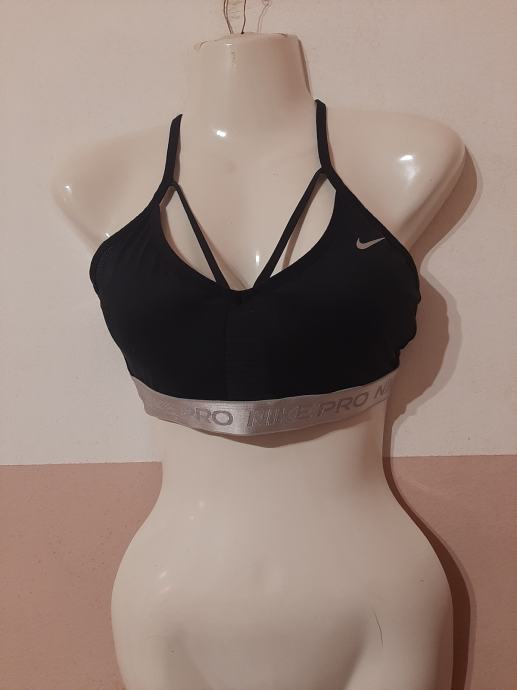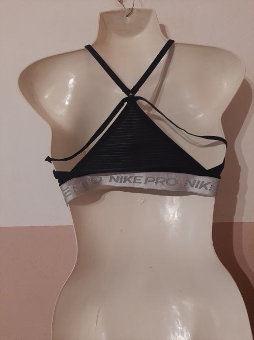 Crni ženski sportski top Nike. Jako lijepog dizajna. Nošen vrlo kratko. Košarice podstavljene s umecima koji se mogu skinuti. Vel. S