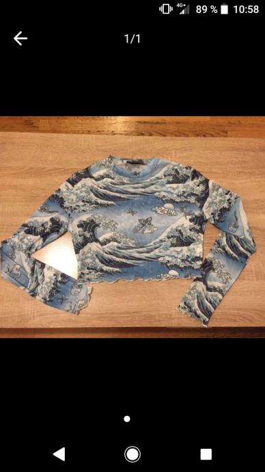 Prodajem žensku majcu dugih rukava velicine M (38).Majca je vrlo rijetko korištena i zato se nalazi u odličnom stanju. Materijal je transparentan a motiv sa valovima i leptirićima je vrlo interesantan. Cijena je 5€ +troskovi postarine iz Austrije. Ukoliko narucite paket sa mog profila u vrijednosti od 60€ tada ste oslobodjeni troskova za postarinu. U tom slucaju troskove postarine preuzimam ja. Paket se salje iz Austrije odmah nakon sto novac legne na hrvatski racun koji se nalazi u hrvatskoj otp banci ili putem peypala.