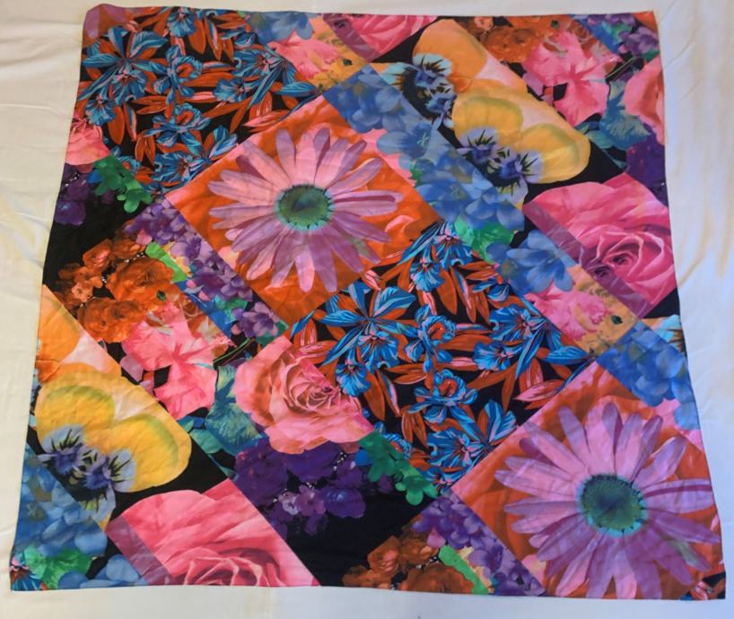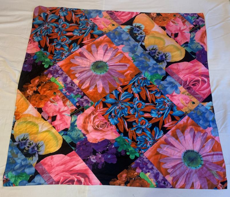 Cvjetna marama/šal, dimenzije otprilike 125 cm x 125 cm.