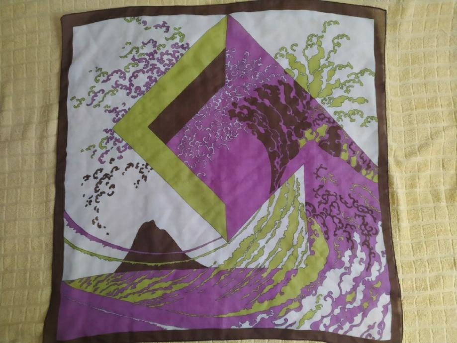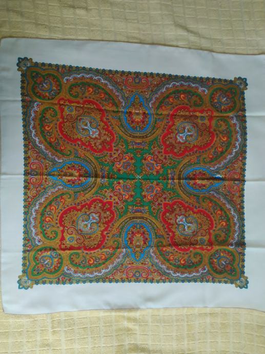 4. Marama smeđe ljubičasta bež zelena uzorak, svilena 71 x 71cm.