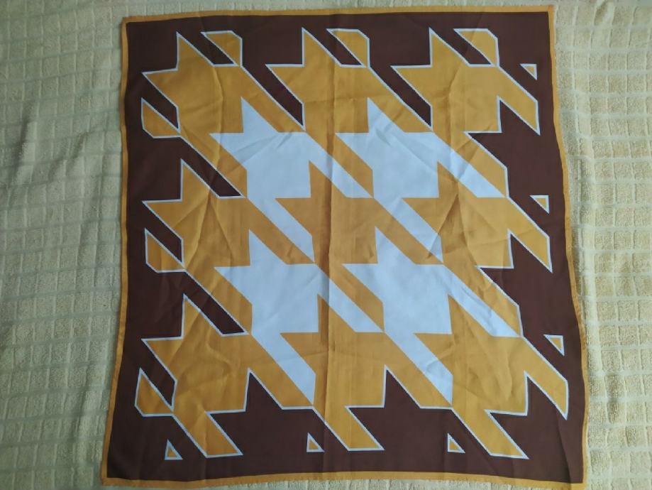 3. Marama bijelo smeđa žuta uzorak, svilena 67 x 70cm.