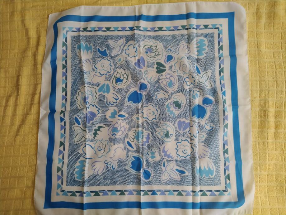 4. Marama bijelo plava cvijetni uzorak, svilena 73 x 73cm.