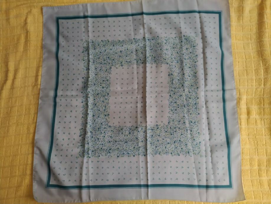 5. Marama bijelo plavo zelena uzorak, svilena 65 x 65cm.