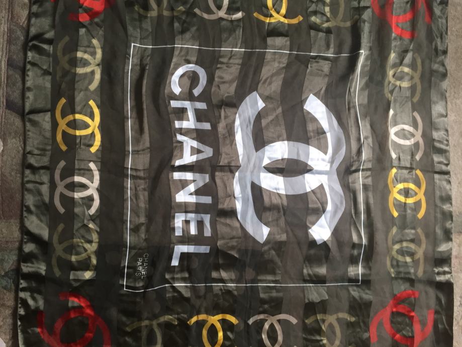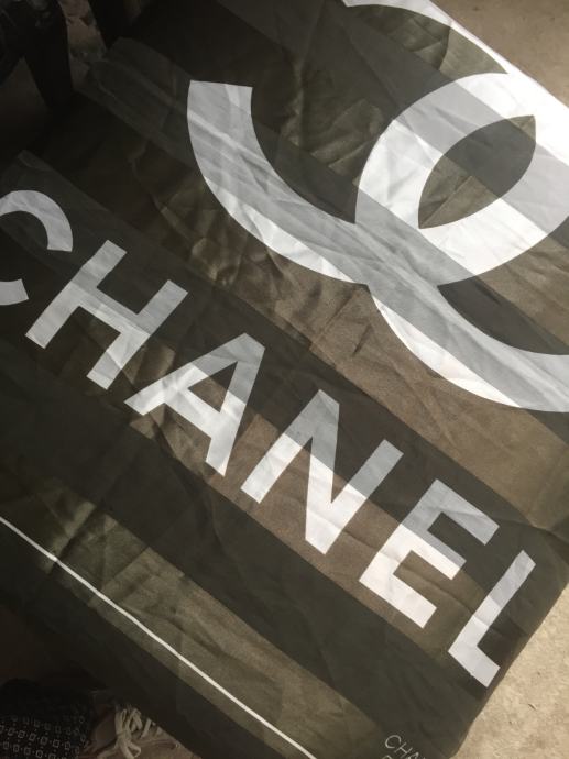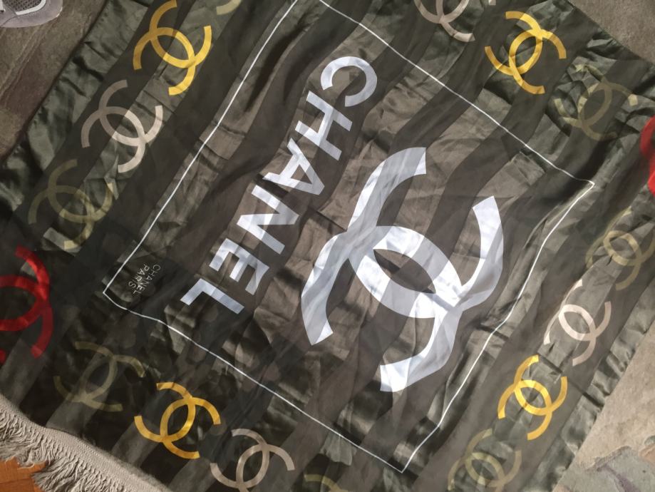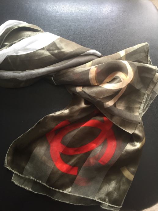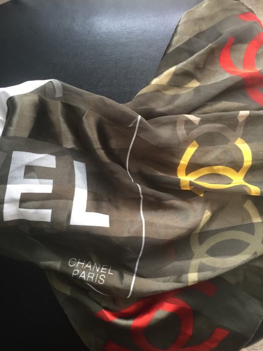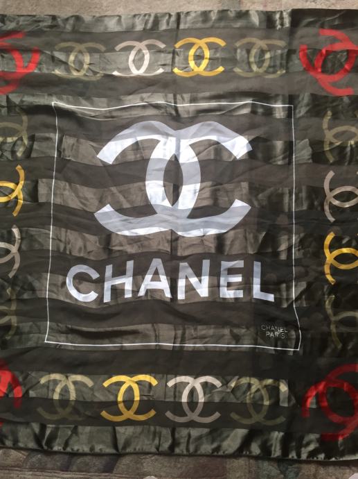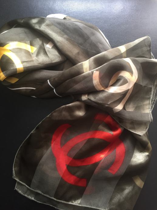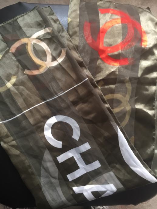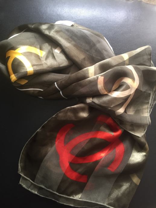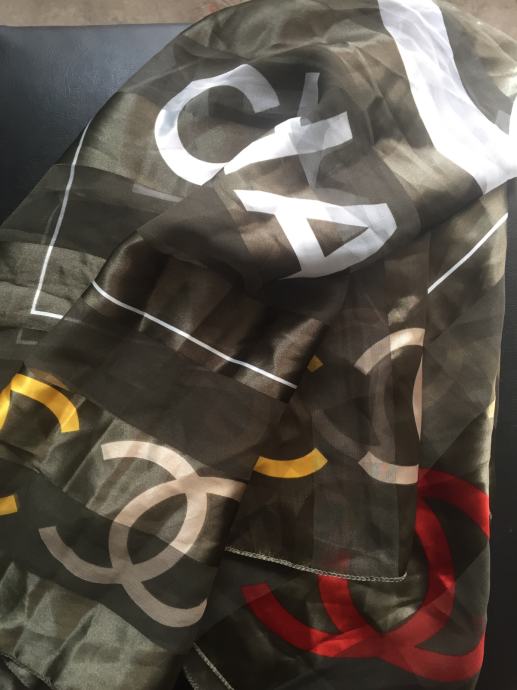 Oversize Chanel svilena satenska marama pareo sa dizajnerskim logom dim.100 X 100 cm efektne boje,još ljepše u živo ..novo!