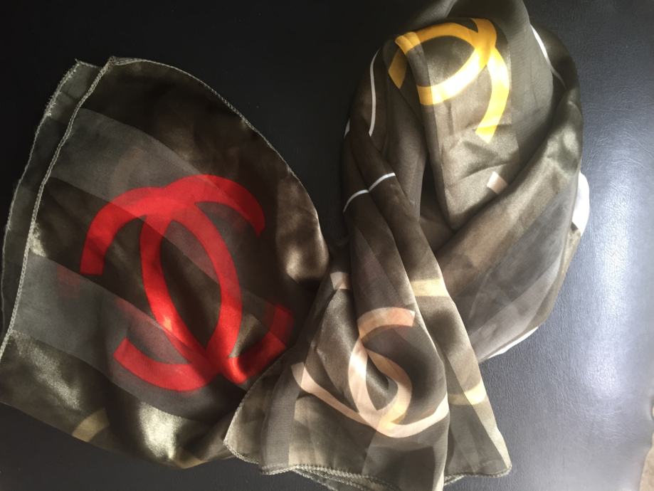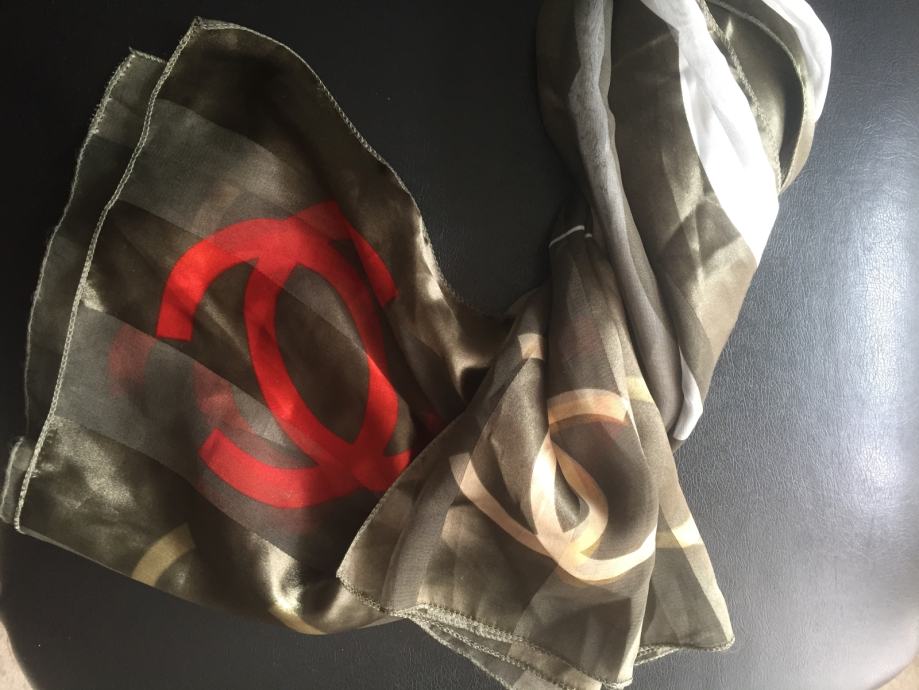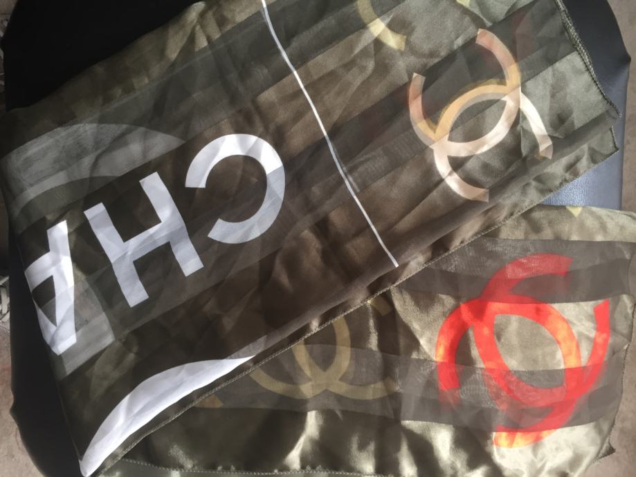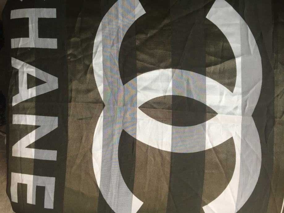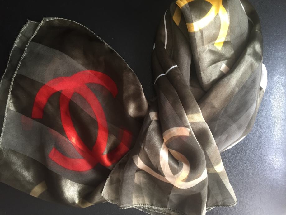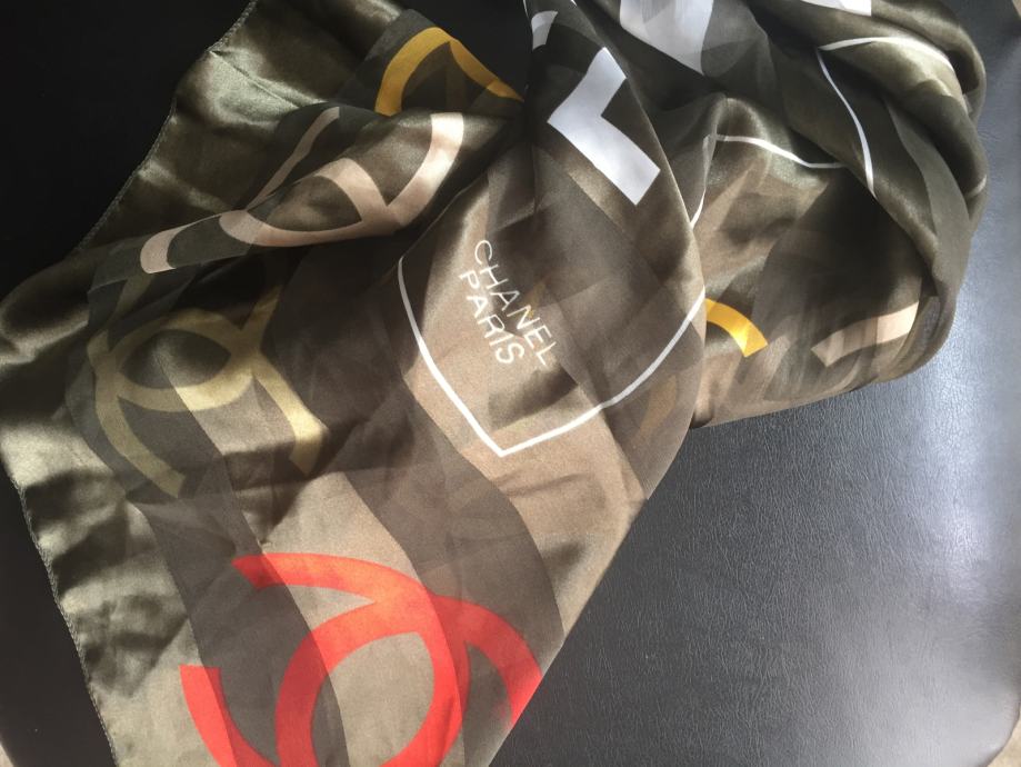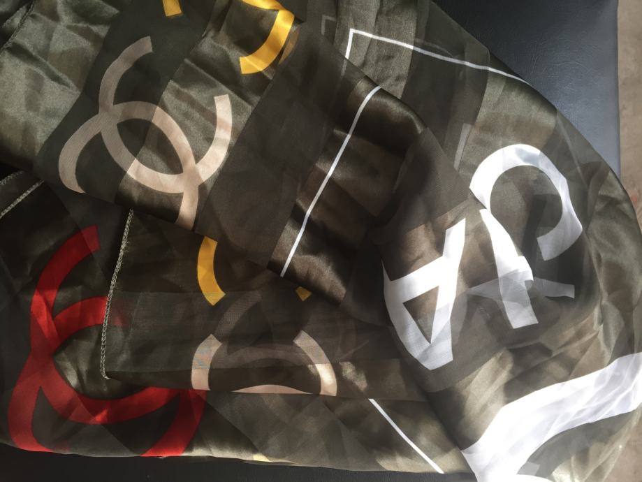 Oversize Chanel svilena satenska marama pareo sa dizajnerskim logom dim.100 X 100 cm efektne boje,još ljepše u živo ..novo!