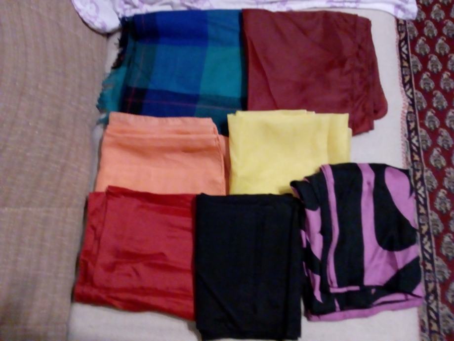 Prva marama s lijeve strane gore je od poliakrila, a ostale su od svilenkastog materijala.